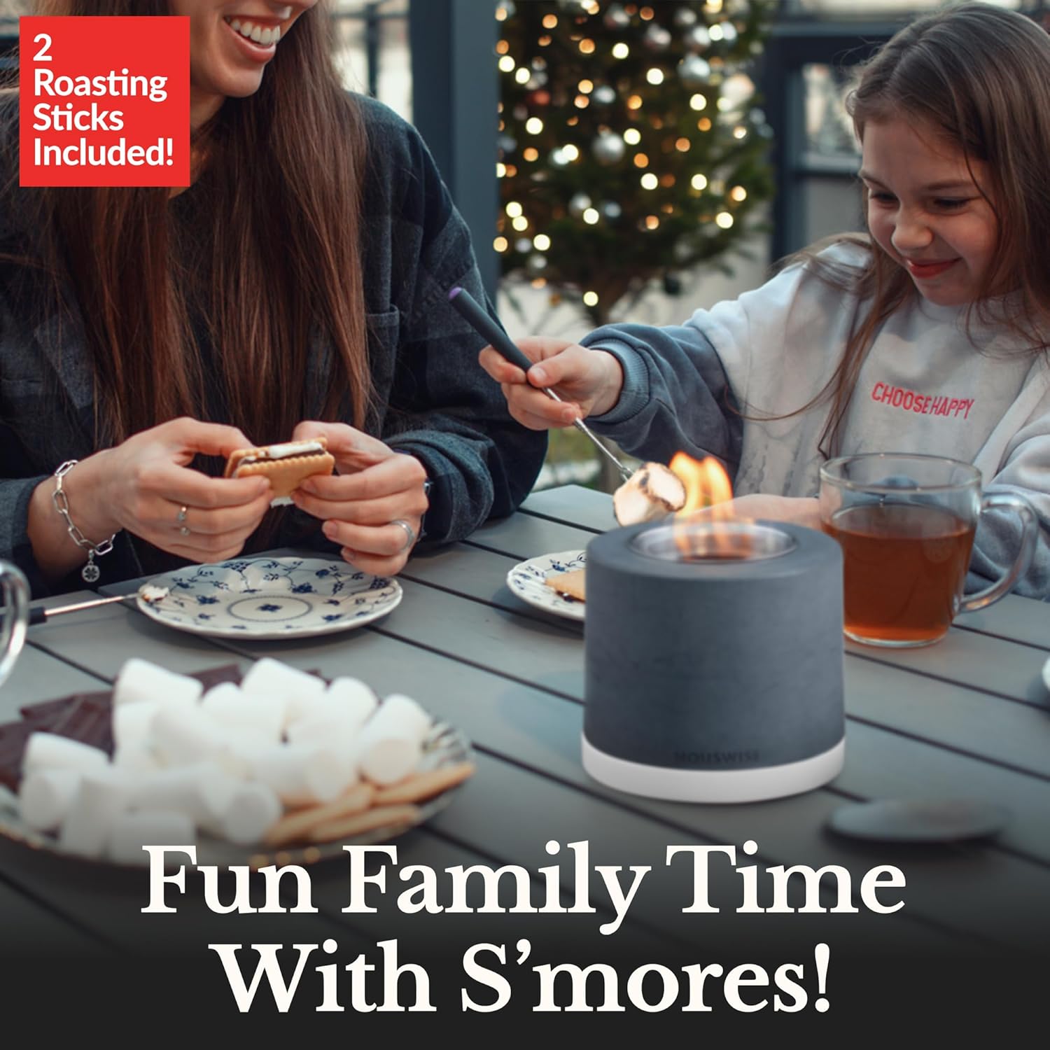 Tabletop Fire Pit Smores Maker Kit – Concrete Outdoor & Indoor Fire Pit Tabletop, Table Top Firepit, Small Portable Mini Indoor Fireplace